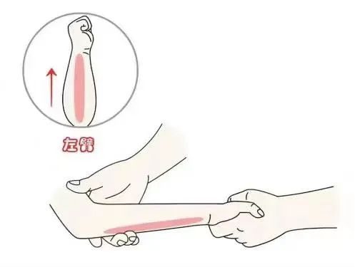 位置:清天河水位于前臂正中,手腕横纹向上至肘横纹;退六腑位于前臂尺侧,肘横纹向下至腕横纹